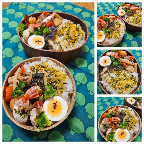 今日のお昼ご飯は久しぶりにお弁当箱に詰めてみました。年末お掃除してたらお弁当箱を入れた箱を主人が見つけ『せっかくだから、出しとったよ』『えっ···